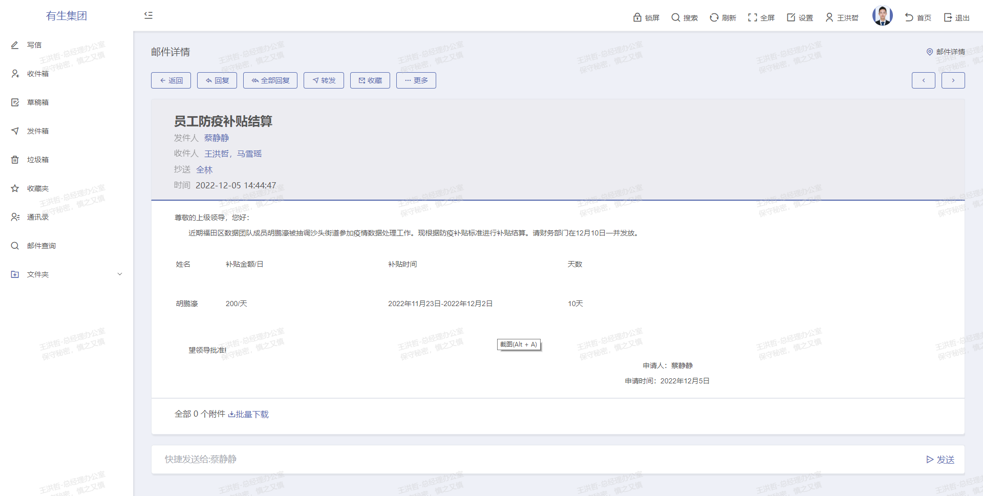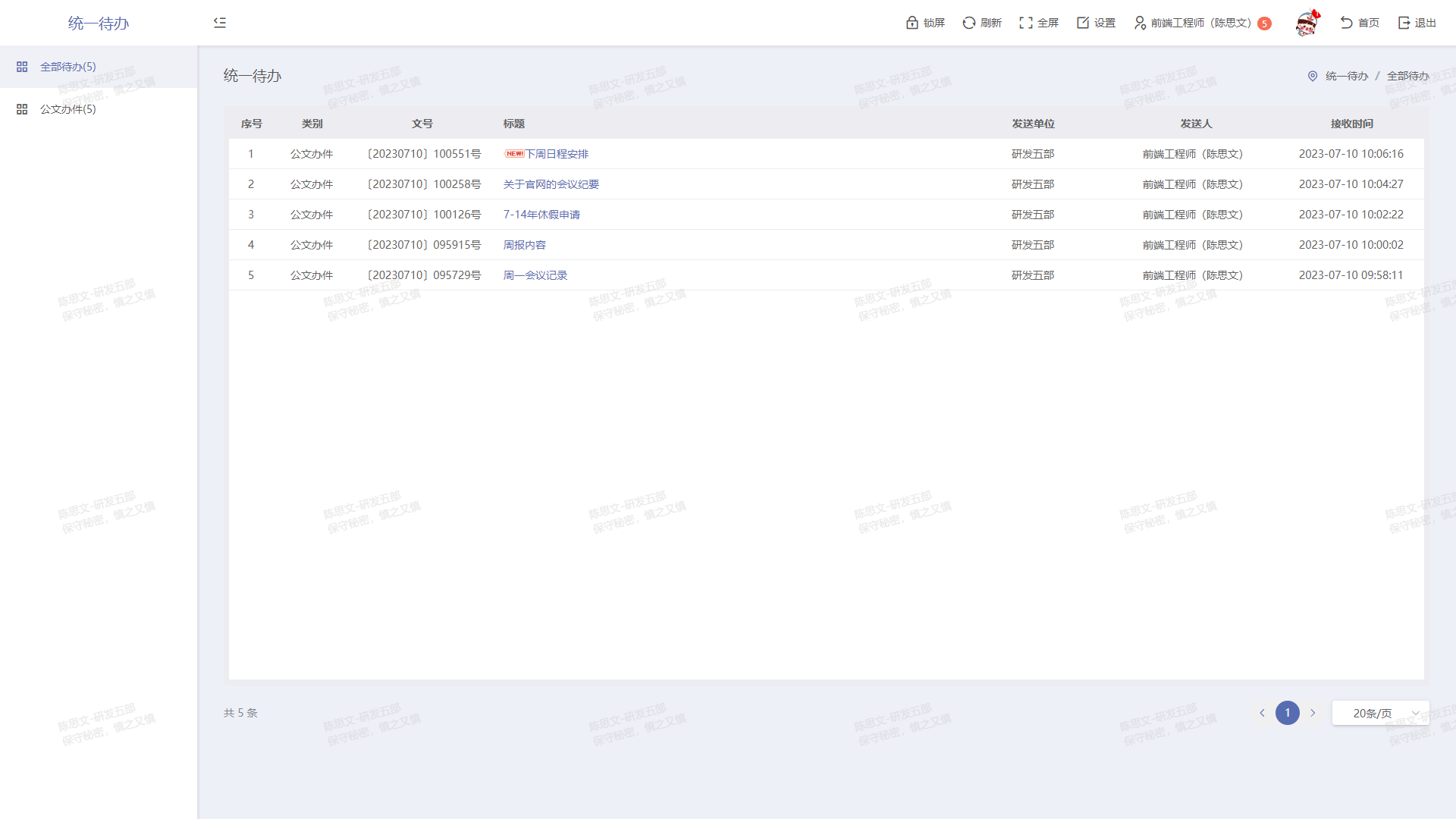 工作桌面、工作流程、即時通訊、網絡硬盤、電子郵件五大核心部件